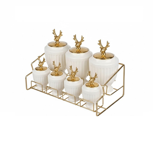 ست پاسماوری مدل گوزنی، انتخابی لوکس و کاربردی برای کسانی است که به زیبایی، کیفیت و نظم در آشپزخانه اهمیت میدهند. بدنهی ظروف از چینی مرغوب و مقاوم ساخته شده و با رنگ سفید براق، جلوهای تمیز و شیک ایجاد میکند. دربها با آبکاری طلایی و دستگیرههای منحصربهفرد به شکل شاخ گوزن، ظاهری دکوراتیو و سلطنتی به این مجموعه بخشیدهاند. این سرویس شامل چندین ظرف در دو سایز مختلف است که برای نگهداری انواع مواد غذایی خشک مانند شکر، چای، قهوه، ادویه، حبوبات و خشکبار کاملاً مناسباند. طراحی شیاردار کلاسیک بدنه، همراه با استند فلزی آبکاریشدهی طلایی، ضمن افزایش زیبایی، باعث استحکام و چیدمان منظم ظروف میشود و دسترسی سریع به محتویات را ممکن میسازد. این مجموعه گزینهای ایدهآل برای استفاده در آشپزخانههای مدرن و کلاسیک و همچنین هدیهای شیک و ماندگار است.